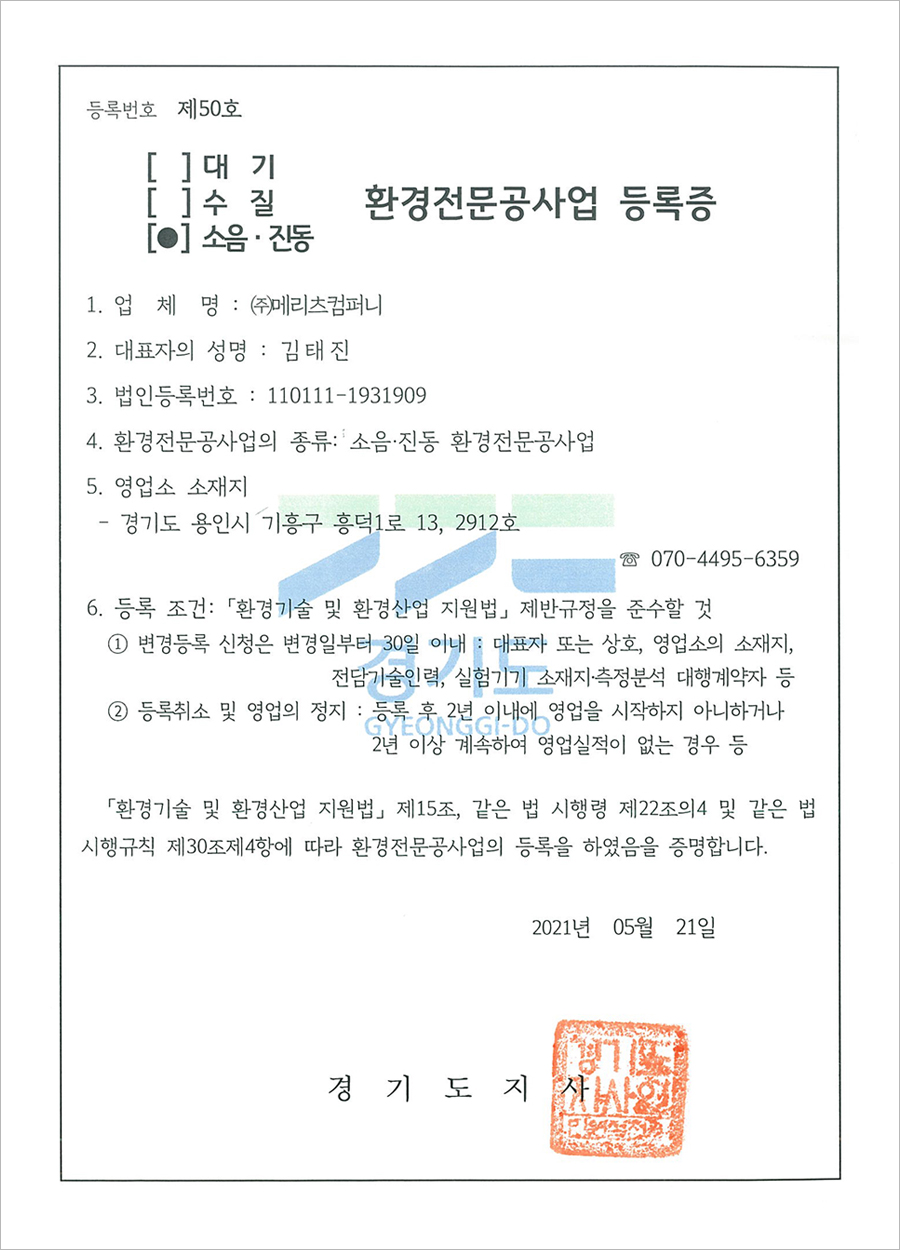 ¸Þ¸®Ã÷ÄÄÆÛ´Ï°¡ ȯ°æÀü¹®°ø»ç¾÷ µî·ÏÁõÀ» ¹ß±Þ¹Þ¾Ò½À´Ï´Ù.